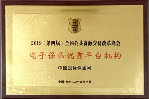 中国投标保函网董事长吴井全等一行受邀出席此次峰会,本次峰会对全国公共资源交易改革创新成果及有关机构平台进行表彰,中国投标保函网荣获2019(第四届)全国公共资源交易改革峰会 “电子保函优秀平台机构”荣誉称号。2019年12月22日在人民日报社报告厅举办的中国第十八届经济论坛上荣获“2019创新榜样”奖杯。