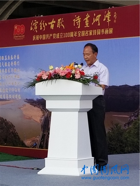 中华诗词学会会长,原国家行政学院副院长周文彰、原总装备部副政委李栋恒、司法部原纪检组长岳宣义、中国光大集团原董事长唐双宁、中华诗词学会常务副会长范诗银、副会长林峰、沈华维、秘书长张存寿,来自各国各地的书画名家、诗人词家近40人,和当地领导、书画家、诗人出席了展览开幕式。中共运城市委常委、河津市委书记李晓武在展览开幕式上致欢迎辞。他希望这次展会能为全国诗词书画名家们搭建一座互相交流、互相切磋的艺术之桥。书画展也将为河津本地的诗词书画爱好者提供一次难得的近距离学习观摩的机会,为河津市的文化艺术发展添上浓墨重彩的一笔!运城市委常委、宣传部长、副市长王志峰在会上致辞。山西省书协主席石跃峰代表书画界东道主致辞。广西书协主席郑军健代表参展诗词及书画艺术家致辞。