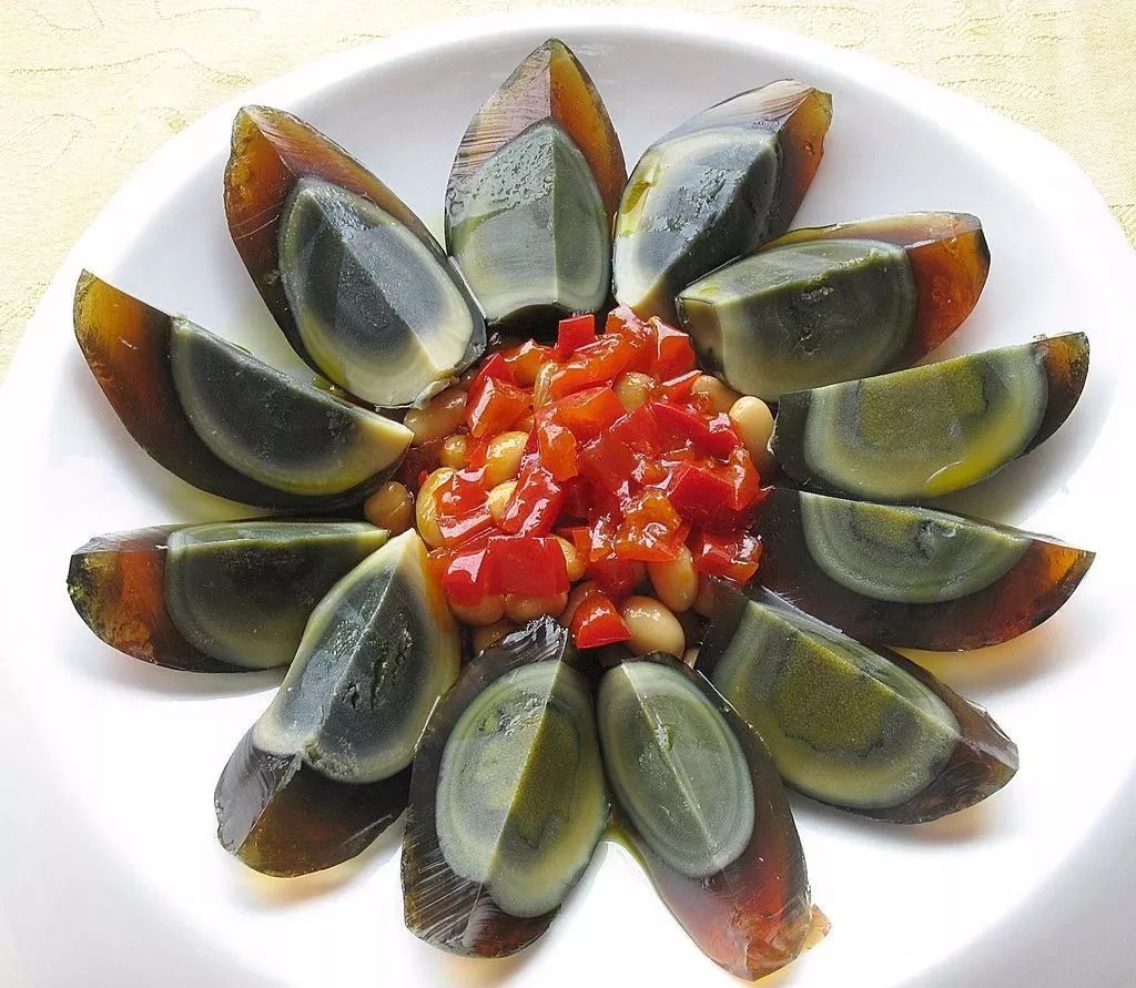 发源于江苏苏州的皮蛋又称松花蛋,因蛋清皮层有朵朵针状结晶而得名。它是以鸭蛋为主,用纯碱、生石灰、黄丹粉、茶叶末、草木灰和食盐加上调和稀泥,包裹加工而成,蛋黄会变稀,蛋白凝结为有弹性的琥珀状胶冻。在很多国人看来,皮蛋是一道不错的美味。但是在外国人眼里,皮蛋又丑又恶心又难吃,切开露出稀糊的蛋黄就散发出一股变质的味道,得到了“魔鬼之蛋”的称号。在国外网站上,皮蛋甚至被列为世界上最恶心的十大食物之一。
