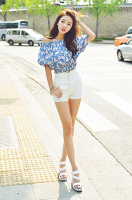 简约紧身裤,妹子搭出清爽时尚,一种自然随性的优雅。