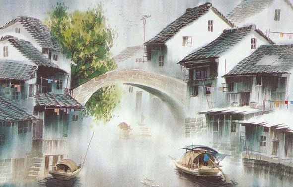 年少的时候,歌楼上听雨,红烛盏盏,昏暗的灯光下罗帐轻盈。人到中年,在异国他乡的小船上,看蒙蒙细雨,茫茫江面,水天一线,西风中,一只孤雁阵阵哀鸣。