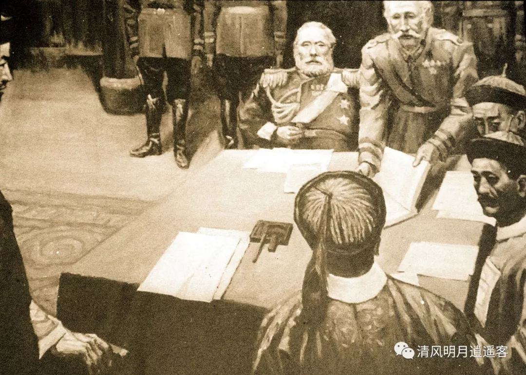 清咸丰八年(1856),清政府黑龙江将军奕山与俄国东西伯利亚总督穆拉维约夫在瑷瑷(今黑龙江省黑河市南)签订中俄《瑷珲签约》,俄国割去黑龙江以北,外兴安岭以南六十多万平方公里中国领土。