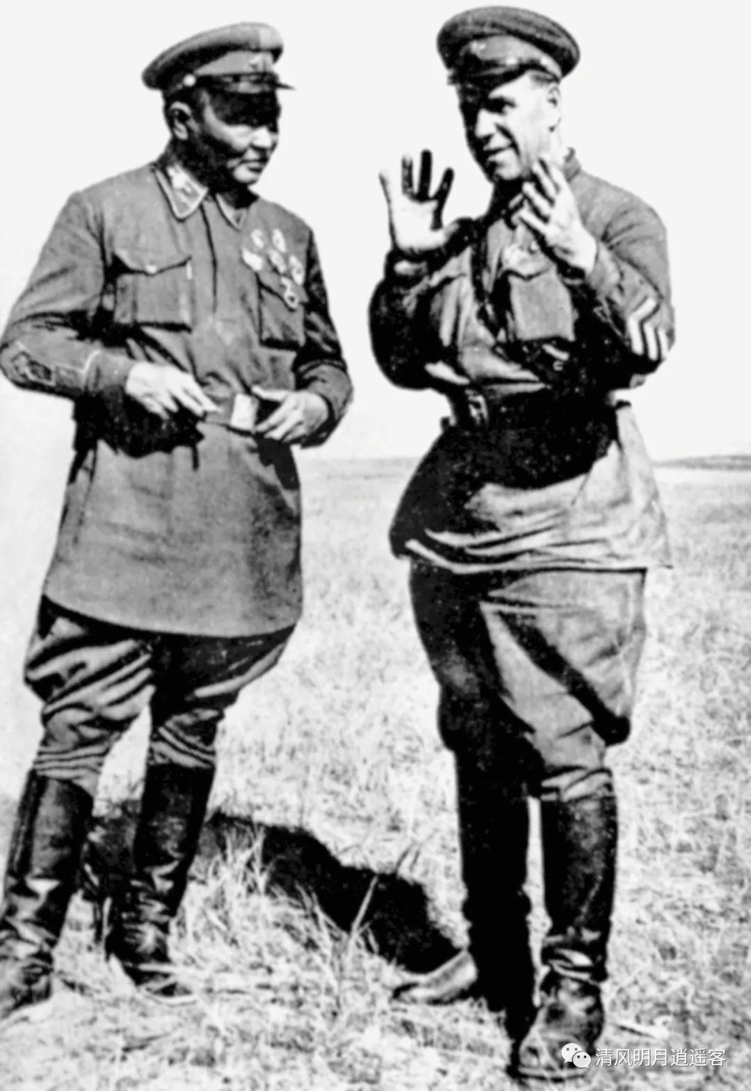 1939年诺门将罕战役期间,苏联远东第一集团军司令朱可夫与蒙古元帅乔巴衕(左)合影。