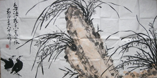 当时,白石大师在其所画之墨竹上题词:“吾亦画几六十年,未能似郑正先生之秀雅,先生年才二十,再用功。追到板桥易也。”苦禅画师亦在其所画之墨兰上题词:“写兰是老年人作或有不工者,郑正老郊写之自是老练.从此努力,当不亚于板桥。”此次在北平学艺期间,深得诸画师的教诲、勉励,作画意境为之大开。