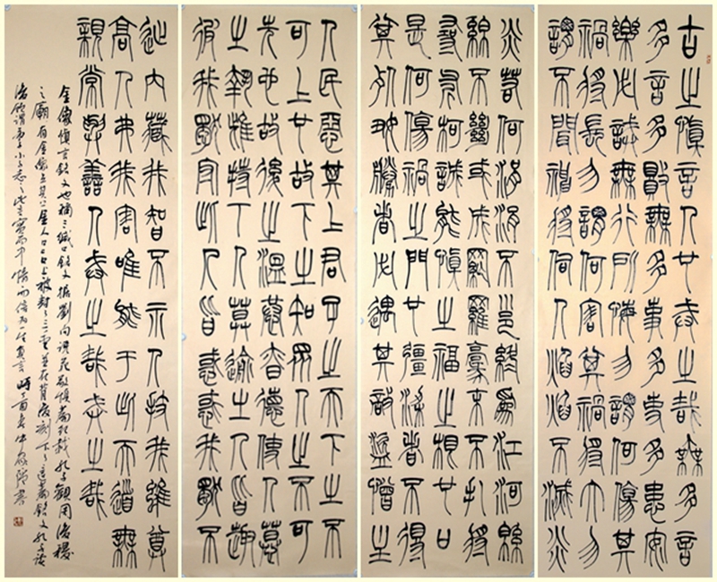 牛家强先生篆书《金人铭 三缄其口》 规格:180cm*55cm*4幅